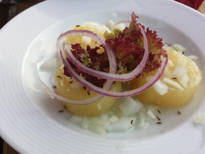 Stellen Sie sich vor, Ihr Restaurant ist voll mit Gästen, darunter einige amerikanische Touristen. Sie wollen die regionale Küche ausprobieren und sich durch die Spezialitäten schlemmen. Die Bedienung kann die meisten Fragen mit ihrem Schulenglisch beantworten, aber dann zeigt der Gast auf einen Eintrag: „What is this ‚Handkas mit Musik‘?“